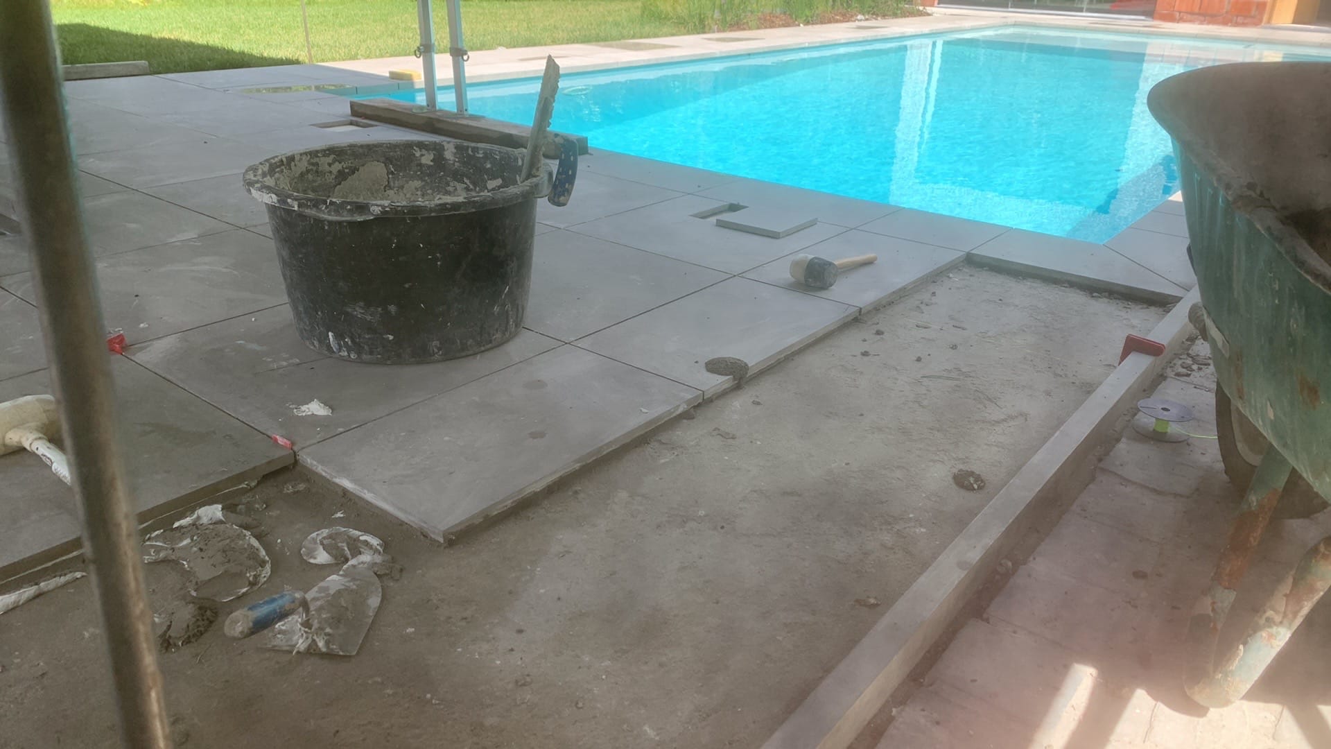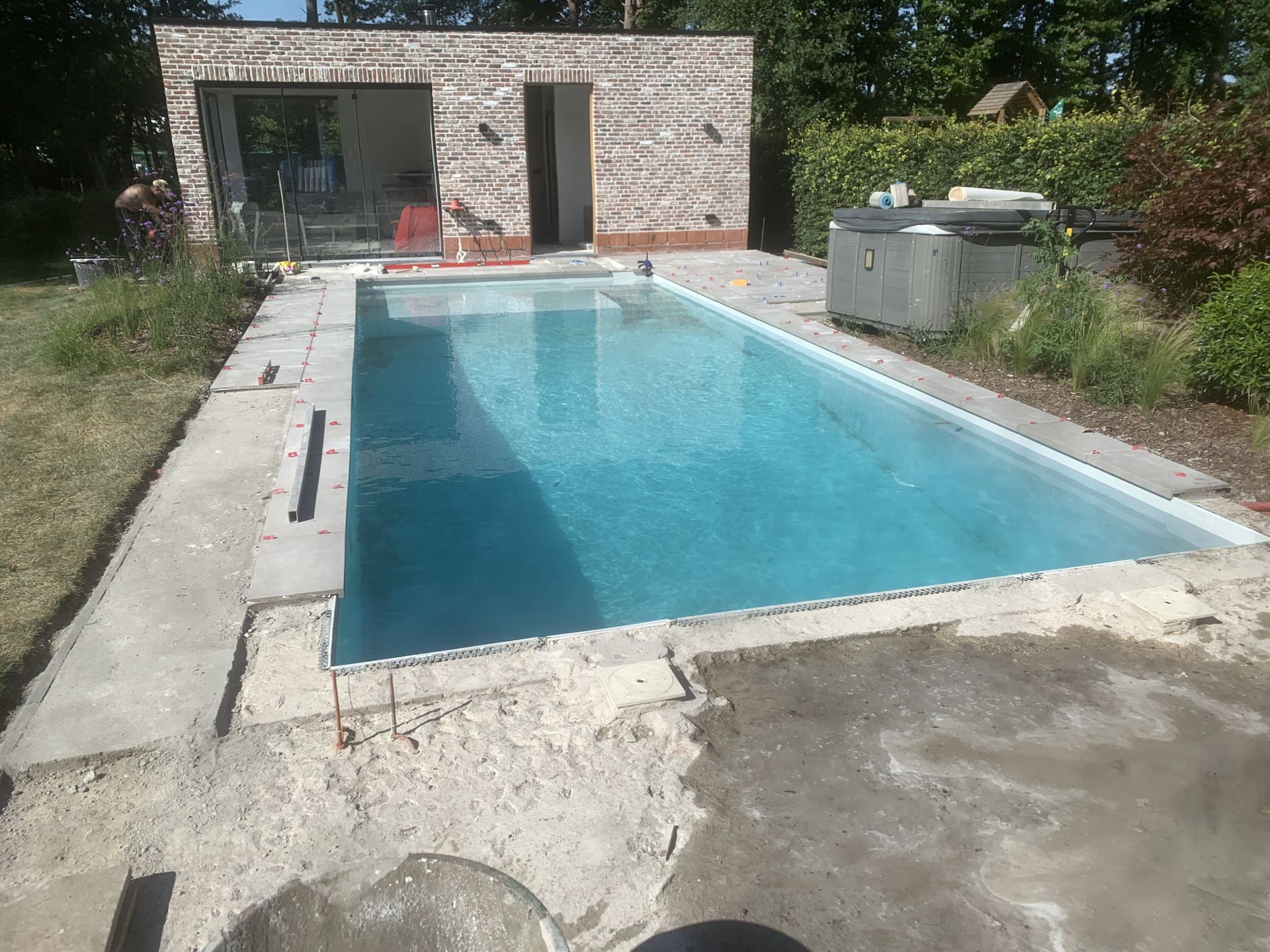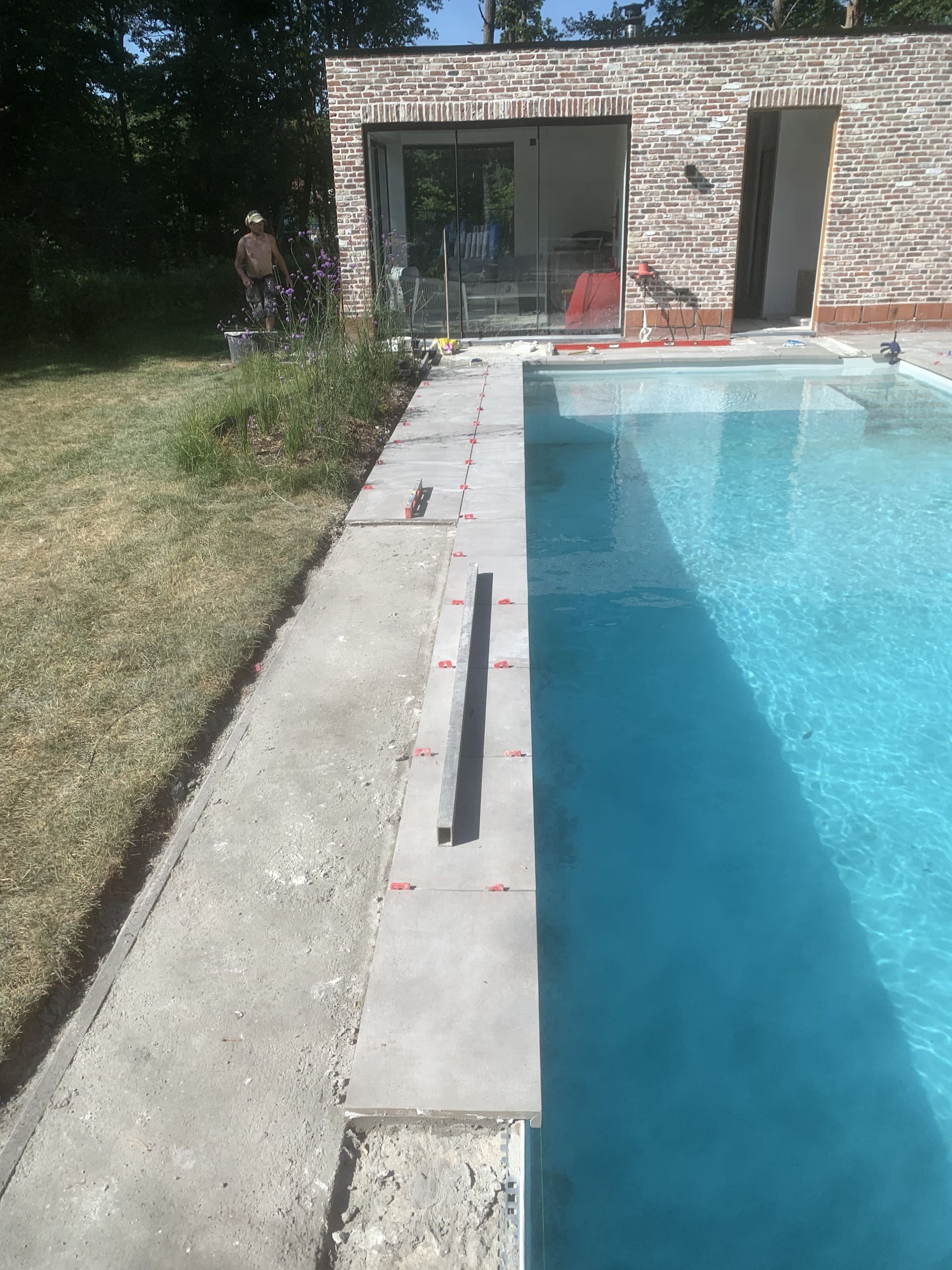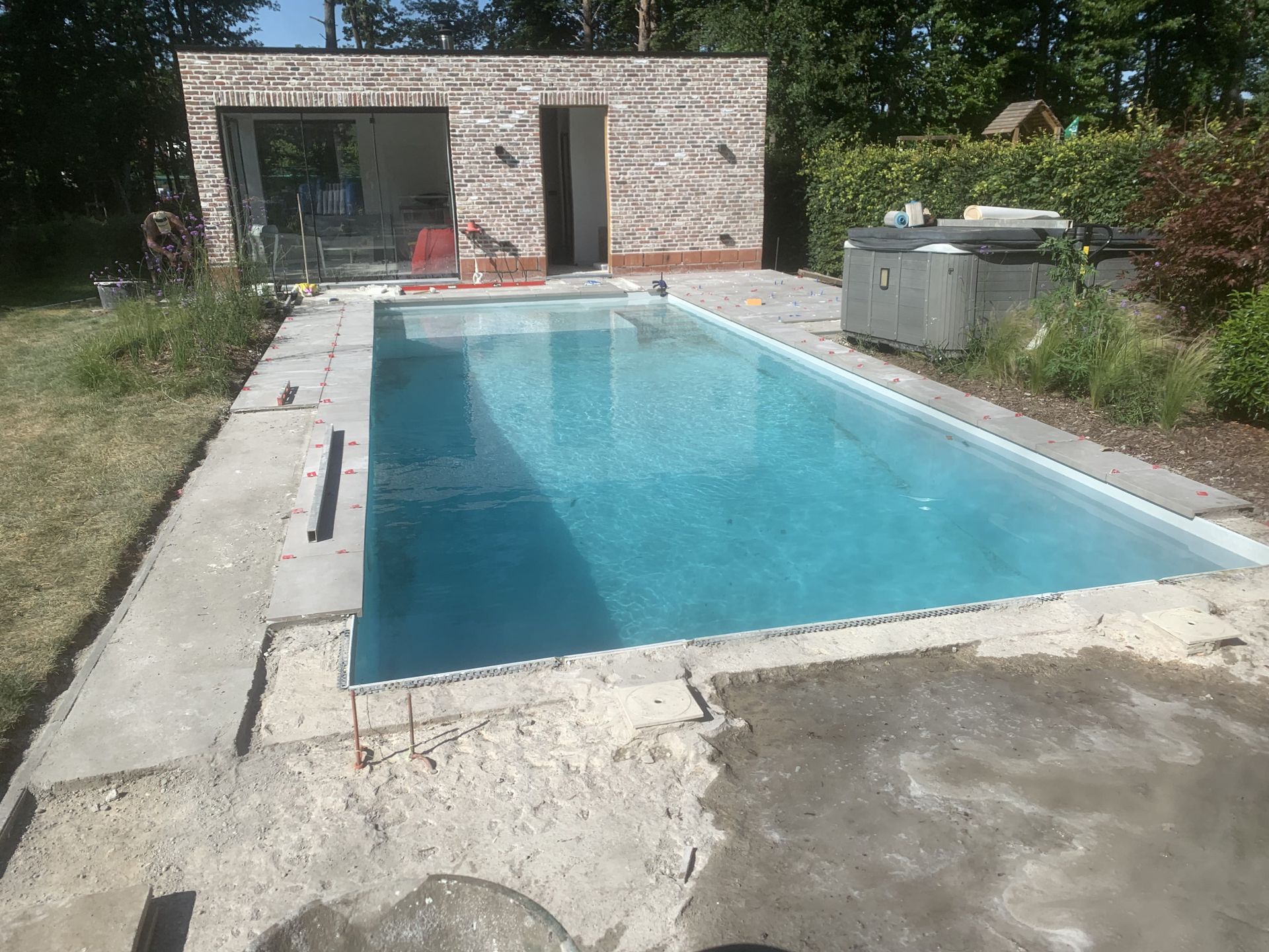 Aanleg klinkers rond zwembad