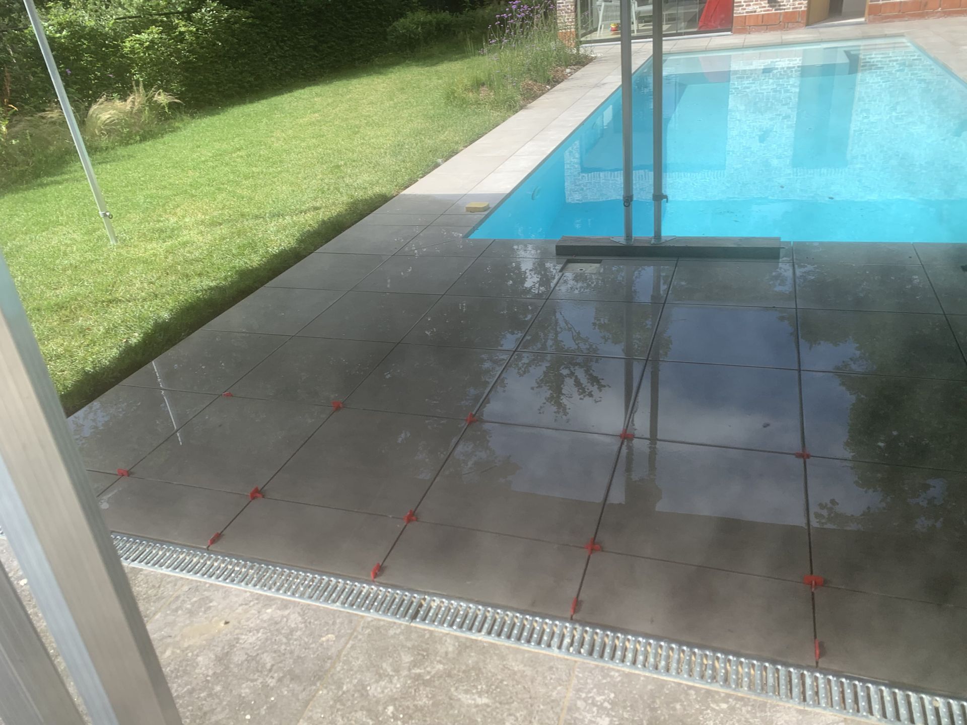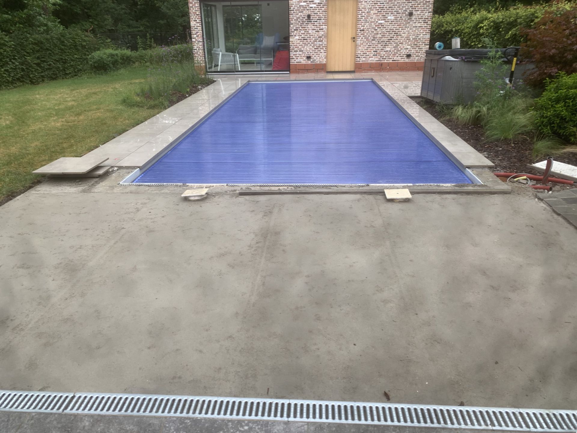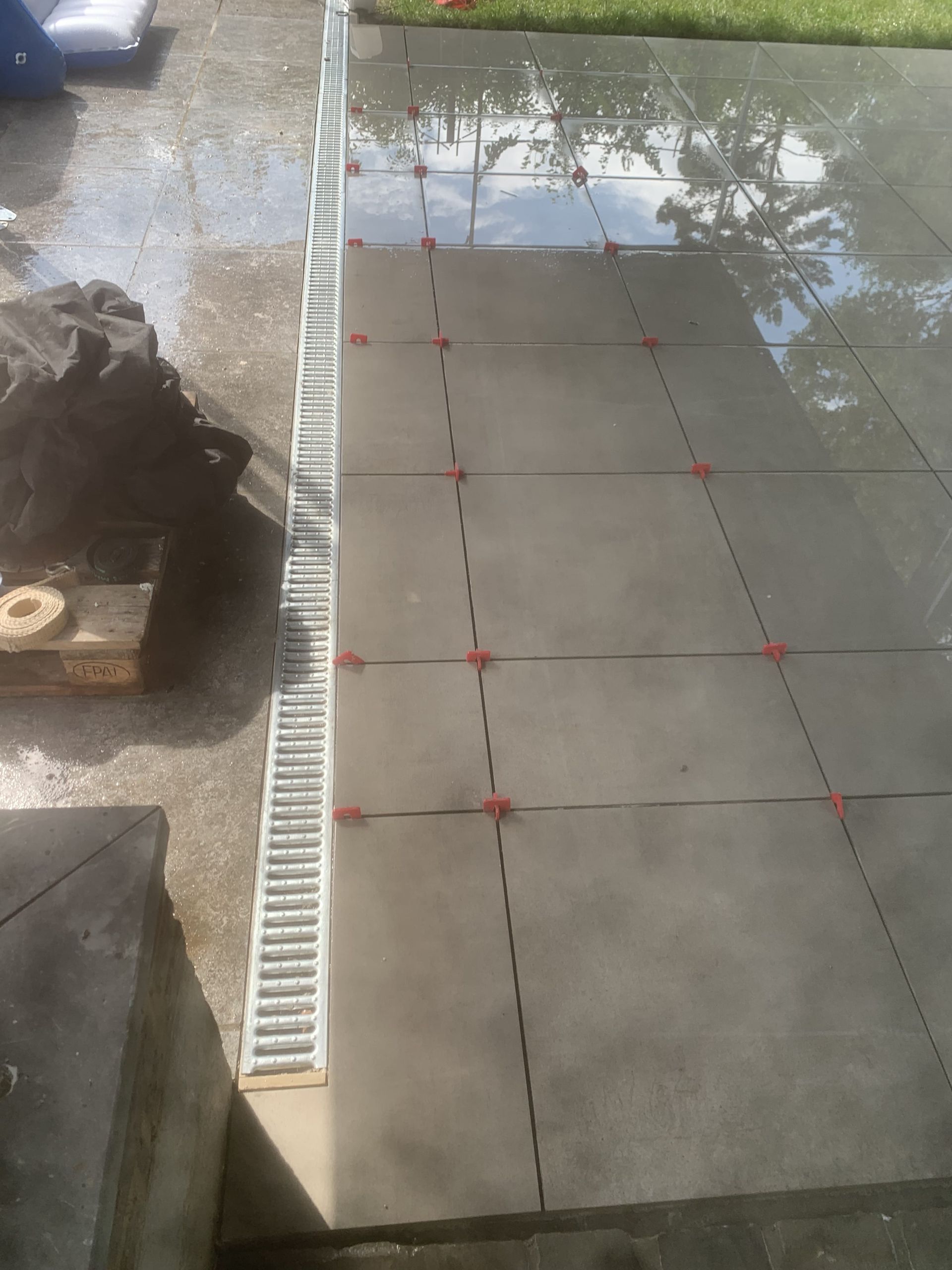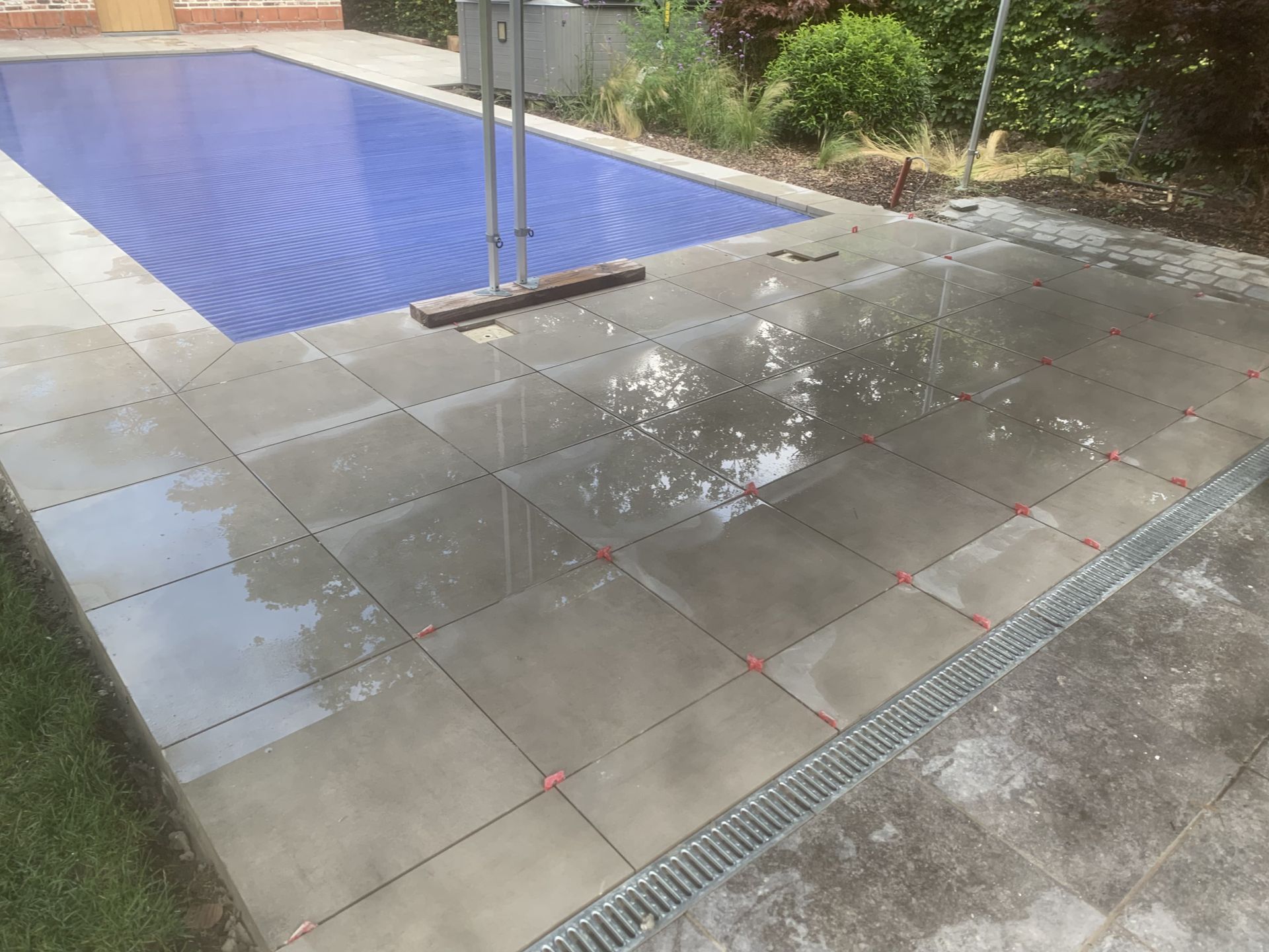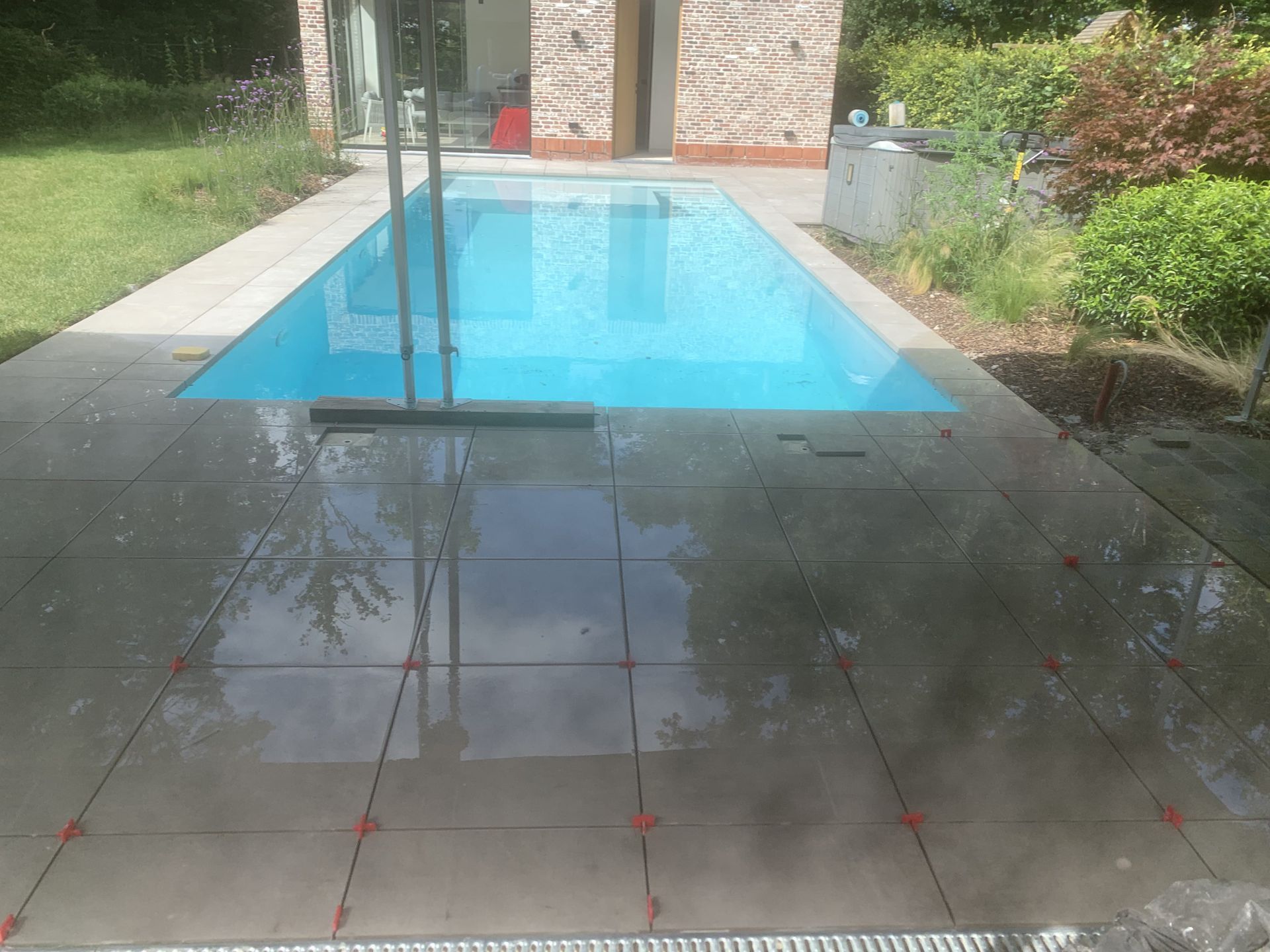 Aanleg klinkers rond zwembad